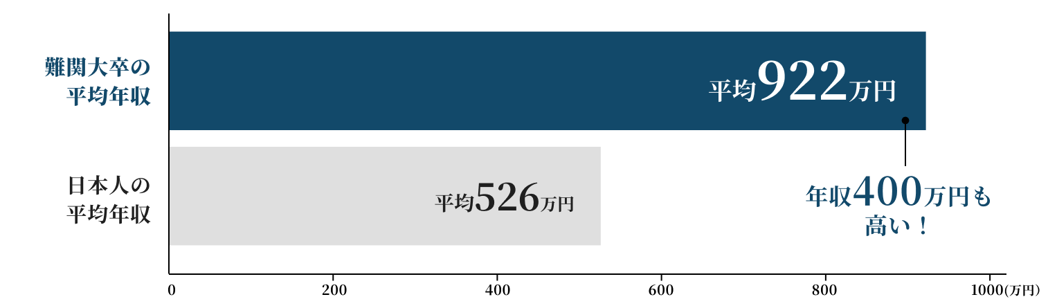 難関大の場合は、入学が1年遅れると約922万円(平均年収)の損失になります。ですので、金銭面を気にされるご家庭ほど、早めに受験対策することをお勧めします。また、受験学年の前から、長期的な戦略を立てることで、逃げ切り型で合格に導くこともできます。