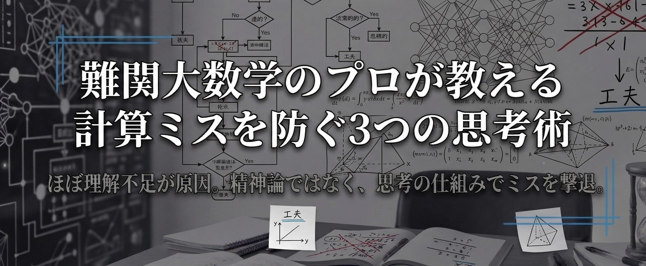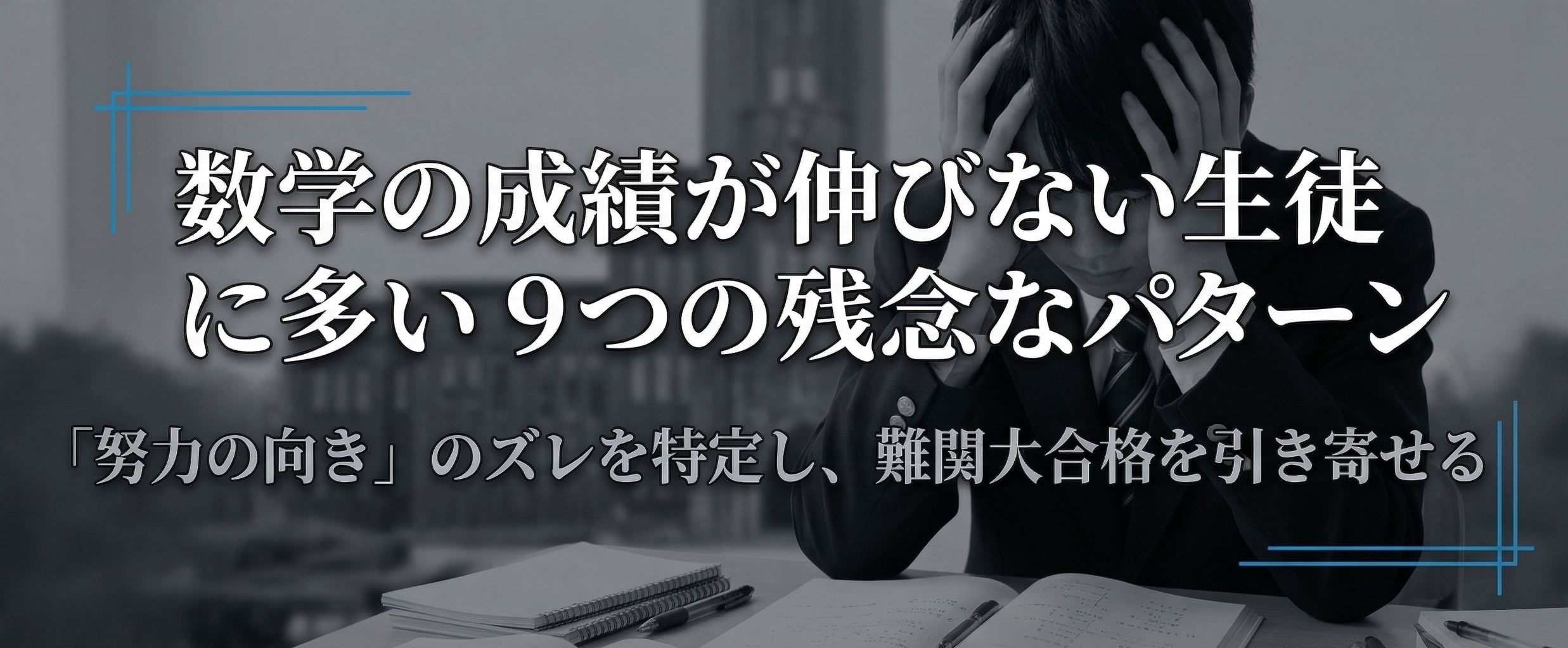 社会に出た後に、全員が必ずしも数学を必要としない職業に就くのにも関わらず、小学生の頃から高校生まで算数・数学を学校で学びます。それは数学の学習を通して論理的な思考力を養うためです。大学側としても論理的に考えることのできる学生が欲しいので、難関大であるほど思考力を必要とするような問題を出題します。ただ単に問題の解法を覚えてそれを当てはめるだけの数学の学習では、そのような問題を解けるようになることはありません。とはいえ、集団塾に通ったり、参考書を読んでみても、一人だけで思考力を高めるような学習法に辿り着くのは難しいのが現状です。