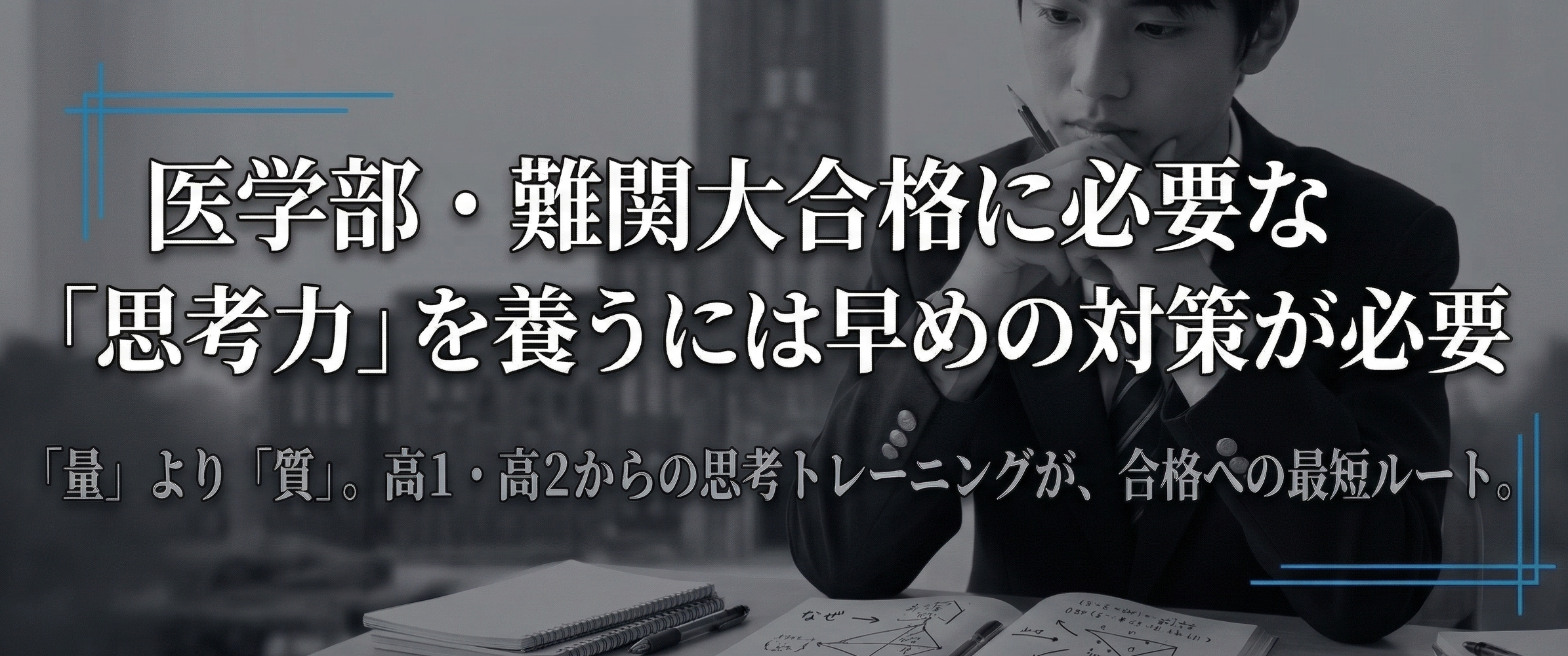 これらの「有名どころの予備校を使えば大丈夫」という安易な発想が横行しています。しかし、これでは必要な思考力が鍛えられません。そして、難関大を目指すには既に手遅れになった頃に気がつき、個別指導に駆け込む受験生が非常に多いのが現実です。