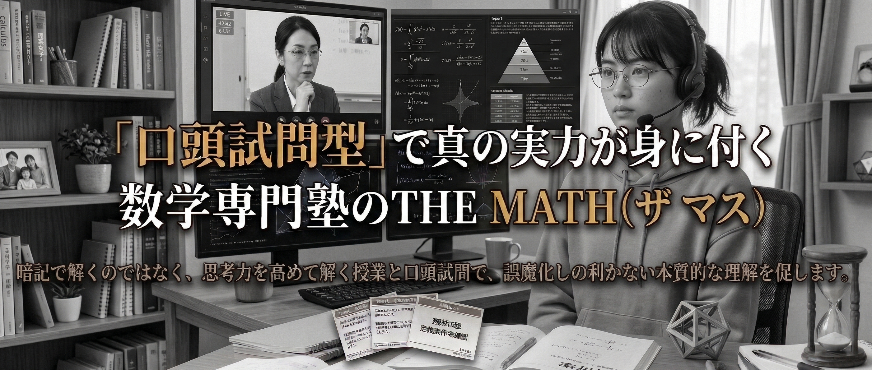 特に難関大の数学は、いわゆる「典型問題」が出題されることはほとんどなく、「思考力」を高めて解く必要があります。 独学では身に付かない思考力を「口頭試問」で高めます。